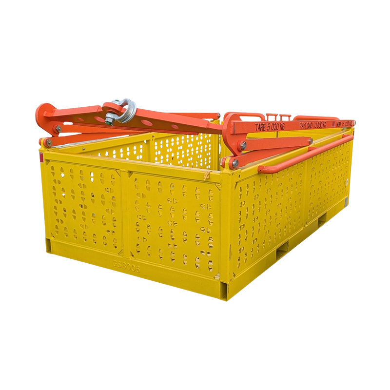 The basket incorporates a solid A-frame lifting arrangement, which folds down when not in use to minimize space requirements.